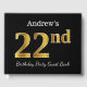 Black, Faux Gold 22nd Birthday Party + Custom Name Guest Book