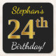 Black, Faux Gold 24th Birthday + Custom Name Square Paper Coaster