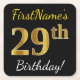 Black, Faux Gold 29th Birthday + Custom Name Square Paper Coaster