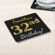 Black, Faux Gold 32nd Birthday + Custom Name Square Paper Coaster