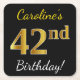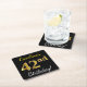 Black, Faux Gold 42nd Birthday + Custom Name Square Paper Coaster