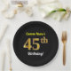 Black, Faux Gold 45th Birthday + Custom Name Paper Plate