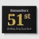 Black, Faux Gold 51st Birthday Party + Custom Name Guest Book