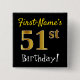 Black, Faux Gold 51st Birthday, With Custom Name 2 Inch Square Button