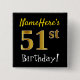 Black, Faux Gold 51st Birthday, With Custom Name 2 Inch Square Button