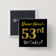 Black, Faux Gold 53rd Birthday, With Custom Name 2 Inch Square Button