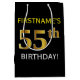 Black, Faux Gold 55th Birthday + Custom Name Medium Gift Bag