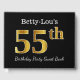 Black, Faux Gold 55th Birthday Party + Custom Name Guest Book