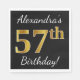 Black, Faux Gold 57th Birthday + Custom Name Napkin