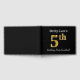 This guest book design features the ordinal number "5th" with a faux gold-like appearance. It also features a personalized name, and a black coloured background. It could be used at a party for somebody celebrating their fifth birthday. [~Z0000054]
