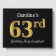 Black, Faux Gold 63rd Birthday Party + Custom Name Guest Book