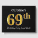 Black, Faux Gold 69th Birthday Party + Custom Name Guest Book