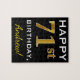 Black, Faux Gold 71st Birthday + Custom Name Jigsaw Puzzle