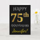 Black, Faux Gold 75th Wedding Anniversary + Name Card