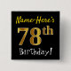 Black, Faux Gold 78th Birthday, With Custom Name 2 Inch Square Button