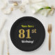 Black, Faux Gold 81st Birthday + Custom Name Paper Plate