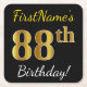 Black, Faux Gold 88th Birthday + Custom Name Square Paper Coaster