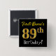 Black, Faux Gold 89th Birthday, With Custom Name 2 Inch Square Button