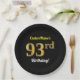 Black, Faux Gold 93rd Birthday + Custom Name Paper Plate
