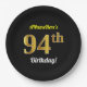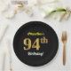 Black, Faux Gold 94th Birthday + Custom Name Paper Plate