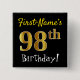 Black, Faux Gold 98th Birthday, With Custom Name 2 Inch Square Button