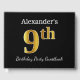 Black, Faux Gold 9th Birthday Party + Custom Name Guest Book