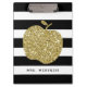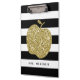 Black & Faux Gold Glitter Apple Teacher Clipboard