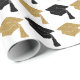 Black & Faux Gold Glitter Grad Cap Graduation Gift Wrapping Paper