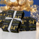 This wrapping paper design features a message like "HAPPY 94th BIRTHDAY", with the "94th" having a faux/imitation gold appearance. It also features a custom name, and a black coloured background. It could perhaps be used when wrapping gifts being given for somebody’s ninety fourth birthday. [~Z0000130]