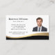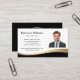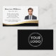Modern, black and golden gradient (printed colour gradient, not real foil) curved border business cards with your custom photo, name, title and contact information. You can change background and font colours, move and resize elements with the design tool. Upload your logo on the back.