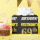 This wrapping paper design features a message like "FIRSTNAME’S 69th BIRTHDAY!", with the "69th" having a faux/imitation gold-like colour appearance, and with the name and "BIRTHDAY" in a fun, bold font. The name can be personalized, and the background is coloured black. Wrapping paper like this could perhaps be used when wrapping birthday gifts being given to somebody in celebration of their sixty ninth birthday. [~Z0000203]