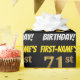 This wrapping paper design features a message like "FIRST-NAME’S 71st BIRTHDAY!", with the "71st" having a faux/imitation gold-like colour appearance, and with the name and "BIRTHDAY" in a fun, bold font. The name can be personalized, and the background is coloured black. Wrapping paper like this could perhaps be used when wrapping birthday gifts being given to somebody in celebration of their seventy first birthday. [~Z0000203]