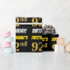 This wrapping paper design features a message like "FIRSTNAME’S 92nd BIRTHDAY!", with the "92nd" having a faux/imitation gold-like colour appearance, and with the name and "BIRTHDAY" in a fun, bold font. The name can be personalized, and the background is coloured black. Wrapping paper like this could perhaps be used when wrapping birthday gifts being given to somebody in celebration of their ninety second birthday. [~Z0000203]