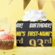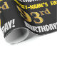 This wrapping paper design features a message like "FIRST-NAME’S 93rd BIRTHDAY!", with the "93rd" having a faux/imitation gold-like colour appearance, and with the name and "BIRTHDAY" in a fun, bold font. The name can be customized, and the background is coloured black. Wrapping paper like this could perhaps be used when wrapping birthday gifts being given to somebody in celebration of their ninety third birthday. [~Z0000203]