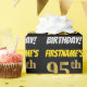 This wrapping paper design features a message like "FIRSTNAME’S 95th BIRTHDAY!", with the "95th" having a faux/imitation gold-like colour appearance, and with the name and "BIRTHDAY" in a fun, bold font. The name can be personalized, and the background is coloured black. Wrapping paper like this could perhaps be used when wrapping birthday gifts being given to somebody in celebration of their ninety fifth birthday. [~Z0000203]
