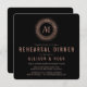 Black & Faux Rose Gold Monogram Rehearsal Dinner Invitation