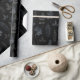 A black floral wrapping paper featuring a pattern of fern leaves and florals in a modern subdued black repeat pattern
