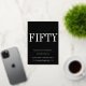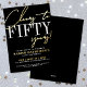Celebrate in style with this modern elegant Fifty Birthday Party Invitation, perfect for marking a milestone in a chic, timeless way. The design features a large “FIFTY” in bold black serif font at the top, with script fonts above and below reading “Cheers To Fifty Years!” in gold foil for a stylish, celebratory look. The name and date are also highlighted in gold foil. You can choose rose gold or silver foil for a different metallic effect.