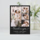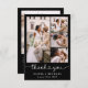 Show your appreciation in style with this Black Five Photo Collage Script Wedding Thank You Card. Featuring a modern black background, elegant script typography, and space for five favourite wedding photos, this card is the perfect way to share memories and gratitude. Ideal for classic, formal, or monochrome wedding themes, it offers a personal and polished finish to your celebration. Customize with your names and message to make each card uniquely yours.