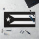 Make a bold statement of resilience and heritage with the Black Flag of Puerto Rico Desk Mat. This design features the powerful monochromatic version of the Puerto Rican flag, which emerged as a poignant symbol of resistance, mourning, and the indomitable spirit of the island. Swapping the traditional red, white, and blue for a striking black and white aesthetic, this flag represents "La Enseña Negra" and serves as a symbol of Puerto Rican strength and the fight for justice and autonomy.