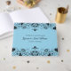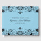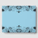Black vintage ornate floral border on a light blue background, wedding guest book design.