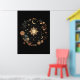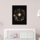 This Black Floral Celestial Boho Wall Art features Moon phases, a floral circle, the Sun, and Stars, and vintage flowers. This art is perfect for bohemian homes.