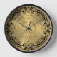 Black ornate floral circle on gold tones background, customizable gold wedding Anniversary. Celebrating 50 years of happy memories customizable text.
