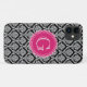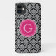 Black Floral Damask Pattern Hot Pink Monogram Case-Mate iPhone Case