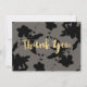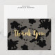 Coordinates with the Black Floral Gold Text Makeup Artist, Nail Salon, and Beauty Grey Business Card Templates by 1201AM. This elegant thank you card features a faux metallic gold foil effect with a grey and black floral pattern in the background for added depth. The opposite side is personalized with your name or business name across the top.