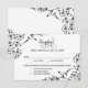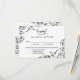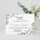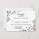 Gather guest responses and dinner selections with this elegant RSVP card featuring ornate black floral scroll and rosette corner accents. The design pairs a beautiful calligraphy "Response" header with clean serif typography for a timeless, formal feel. Fields for guest names, attendance, and three customizable entree choices are clearly organized below the reply-by date. The intricate botanical scrollwork with circular berry motifs adds a distinctive vintage charm. All text is fully editable.