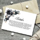 A black floral wedding details enclosure card to include with your invitation for all the important extra details your guests may require to ensure that your special day runs smoothly.