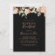This black formal royal floral wedding breakfast invitation is perfect for a modern event. The design features watercolor pink, blush, and white elegant flowers with emerald green leaves.