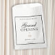 This elegant black and white business grand opening favour bag is an easy-to-edit design that allows you to add your business logo and event details to make it yours. Prepare for your business launch party by opting for this script calligraphy sign with a classic feel. The company event favour bag features a clean, classy colour scheme of black text against a white background surrounded by a thin black border. Add your full-colour logo and edit the details and you can cross this one off your to-do list!