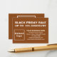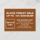 Attract more customers by offering them discount this Black Friday, one of the marketing strategies to have more customers. Customizable enclosure card that you can use to attract more customers to buy your products or clients to like your services. Enclosure card with your business brand as marketing material that you can also use to build brand name awareness. Design colours are light brown and white texts on brown background. To customize this enclosure card, specify the percent discount that you will offer, upload your business logo, type your business name, address, phone number, e-mail and website or your business social media page. Please check the appearance on front and back sides after uploading logo and typing texts. If the appearance is pleasing to you, you can place your order now. If you need to resize and move the logo and texts to fit on this enclosure card, please change in the design tool. You can also change the background colour, font colour and font style in the design tool. Wishing you more sales this Black Friday.
